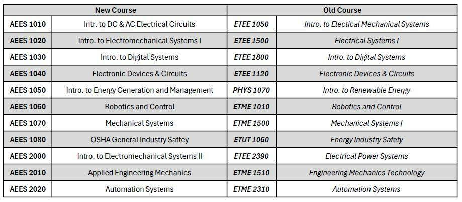 The former Engineering Systems Technology program tracks: Electrical (ETET), Mechanical (ETMT), and Energy Utility (ETPT) have been eliminated and their content has been combined into a new program. The newly revised and merged program: Applied Engineering and Energy Systems (AEES) consists of a single track of study and is designed. This two-year program emphasizes technical skills for analyzing, designing, and troubleshooting systems in areas such as electromechanics, automation, and energy management. Students gain hands-on experience through laboratory work, with a focus on safety, sustainability, and ethical practices.