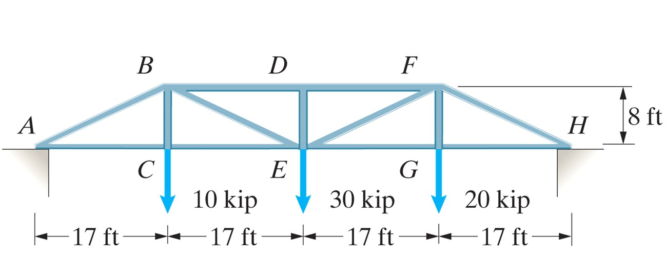 Duplicate the truss analysis found in the handout (completed last week). Then use SolidWorks to solve problem 6.38, members BD, BE, CE